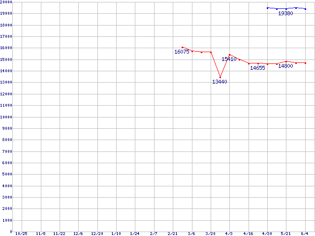 | [↑前グラフ]: | Socket 478 (micro-PGA,FSB 533MHz,L2 512KB,Hyper-Threading,Northwood)の最安値推移 |