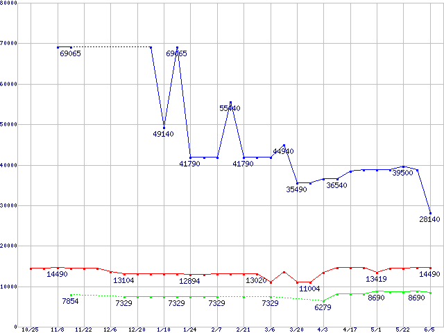 | ※製品名をクリックすると個別のグラフを表示します ※点線部は販売店が確認できなかった、または調査データがないことを示します | |