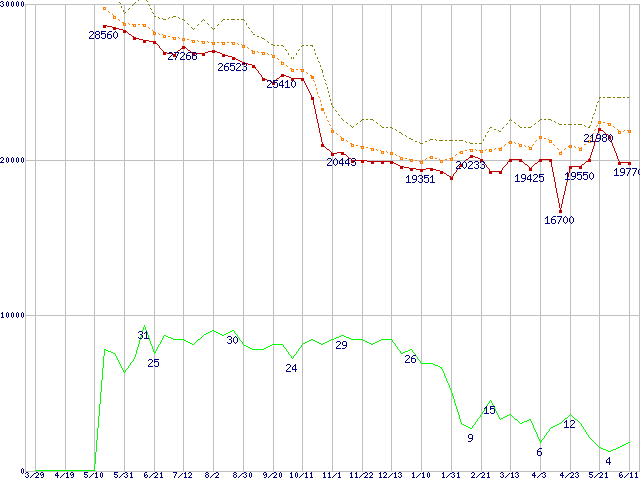 Socket 478 (micro-PGA,FSB 800MHz,L2 512KB,Hyper-Threading,Northwood)の最安値推移