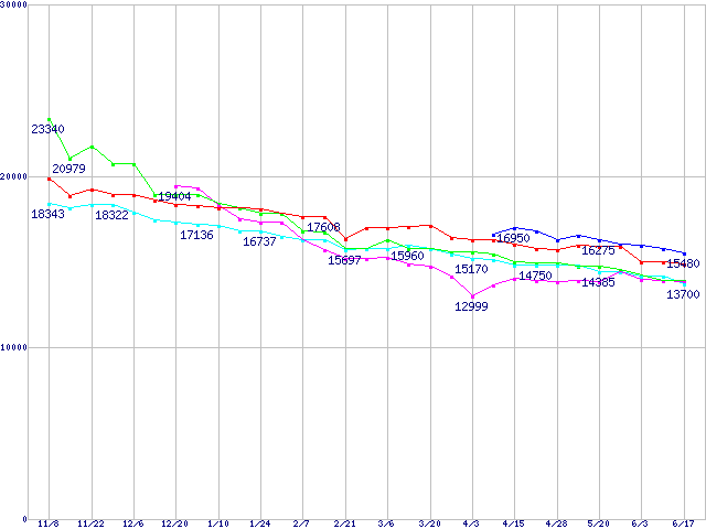| [↑前グラフ]: | HDD 160~200GB未満の最安値推移 |