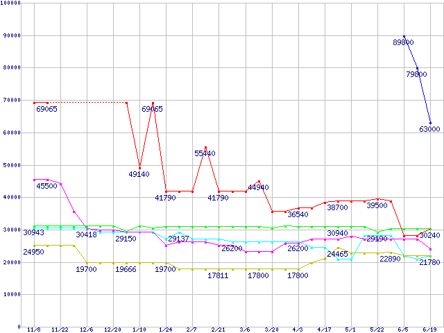 | [↑前グラフ]: | メモリ主要製品の最安値推移 |