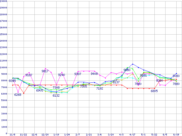 | [↓次グラフ]: | メモリ主要製品(最安値1万円以上)の最安値推移 |