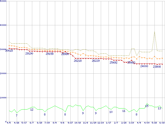 | Xeon 2.40GHz(FSB533) リテールパッケージの価格推移 |