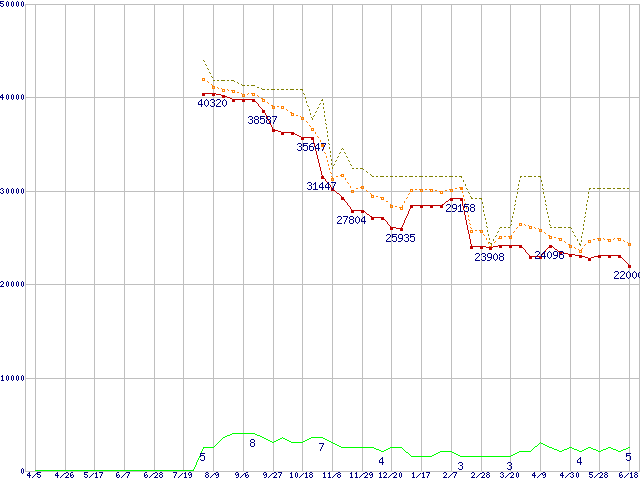 | Opteron 142(1.6GHz) リテールパッケージの価格推移 |