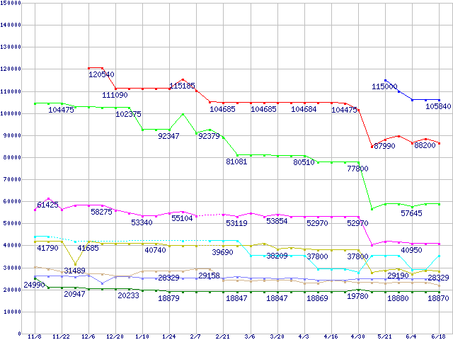 | ※製品名をクリックすると個別のグラフを表示します ※点線部は販売店が確認できなかった、または調査データがないことを示します | |