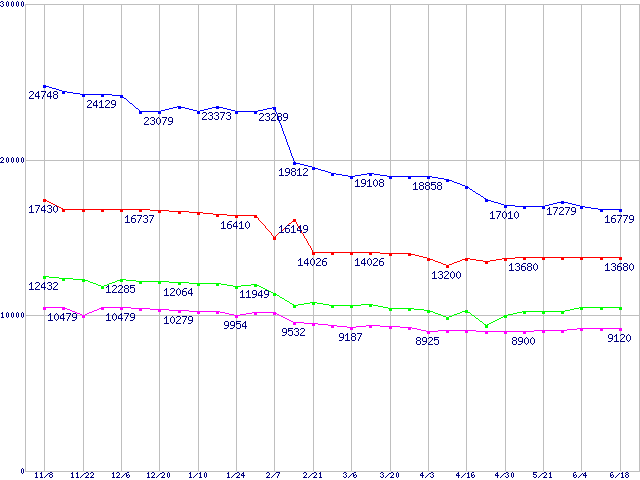 | [↑前グラフ]: | Socket A (OPGA,FSB 400MHz,L2 512KB,Barton)の最安値推移 |