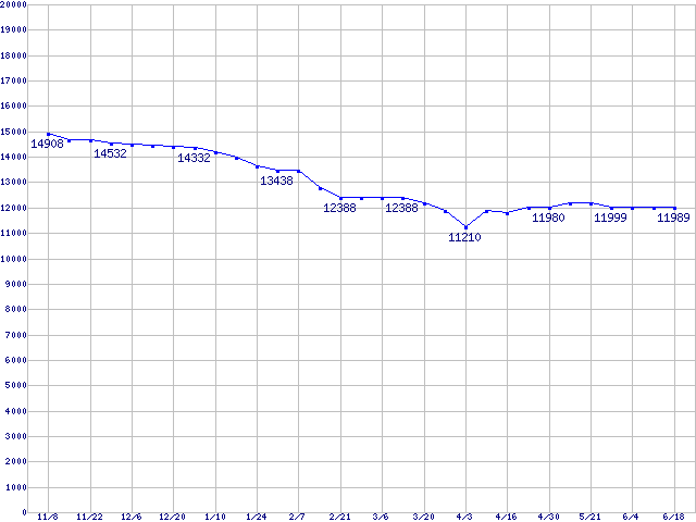 | [↑前グラフ]: | Socket A (OPGA,FSB 333MHz,L2 512KB,Barton)の最安値推移 |