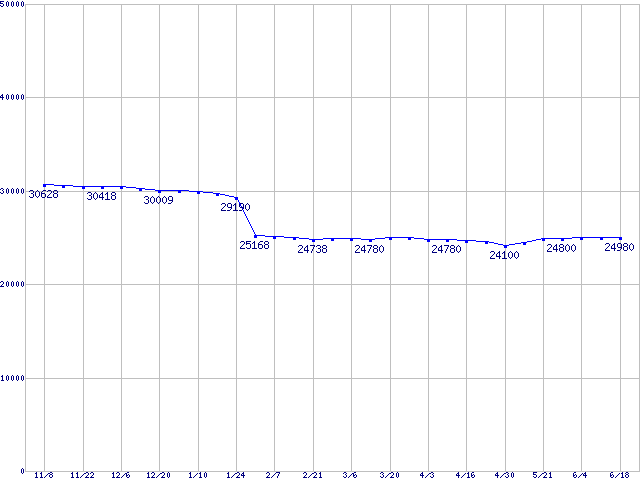 | [↑前グラフ]: | Socket 478 (micro-PGA,FSB 800MHz,L2 512KB,Hyper-Threading,Northwood)の最安値推移 |