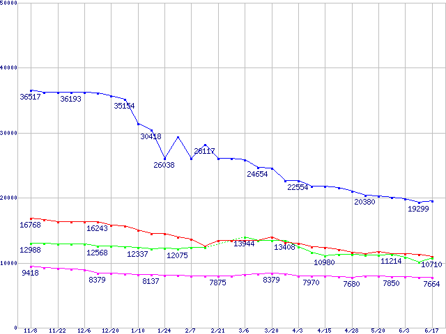 | [↑前グラフ]: | Deskstar 7K400 (7200rpm,SerialATA/150,FDB)の最安値推移 |