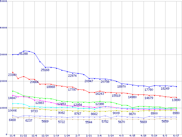 | [↑前グラフ]: | Deskstar 7K250 (7200rpm,SerialATA/150,FDB)の最安値推移 |
