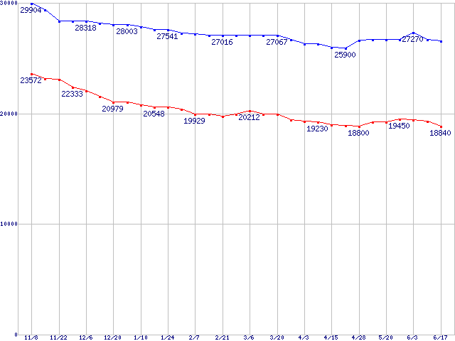 | [↑前グラフ]: | DiamondMax Plus 8 (7200rpm,2MB,UltraATA/133,FDB)の最安値推移 |