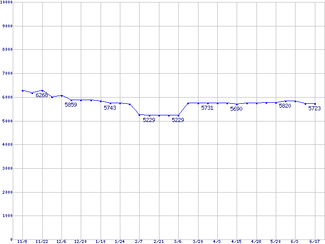 | Fireball 3 (5400rpm,UltraATA/133,2MB,FDB)の最安値推移 |
