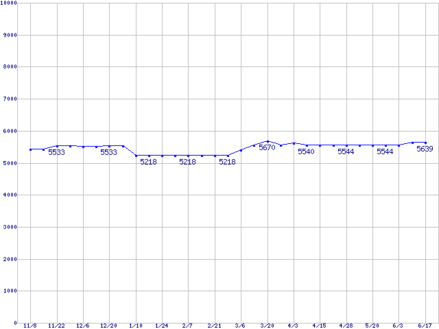 | [↑前グラフ]: | Barracuda 5400.1 (5400rpm,UltraATA/100,2MB,FDB)の最安値推移 |
