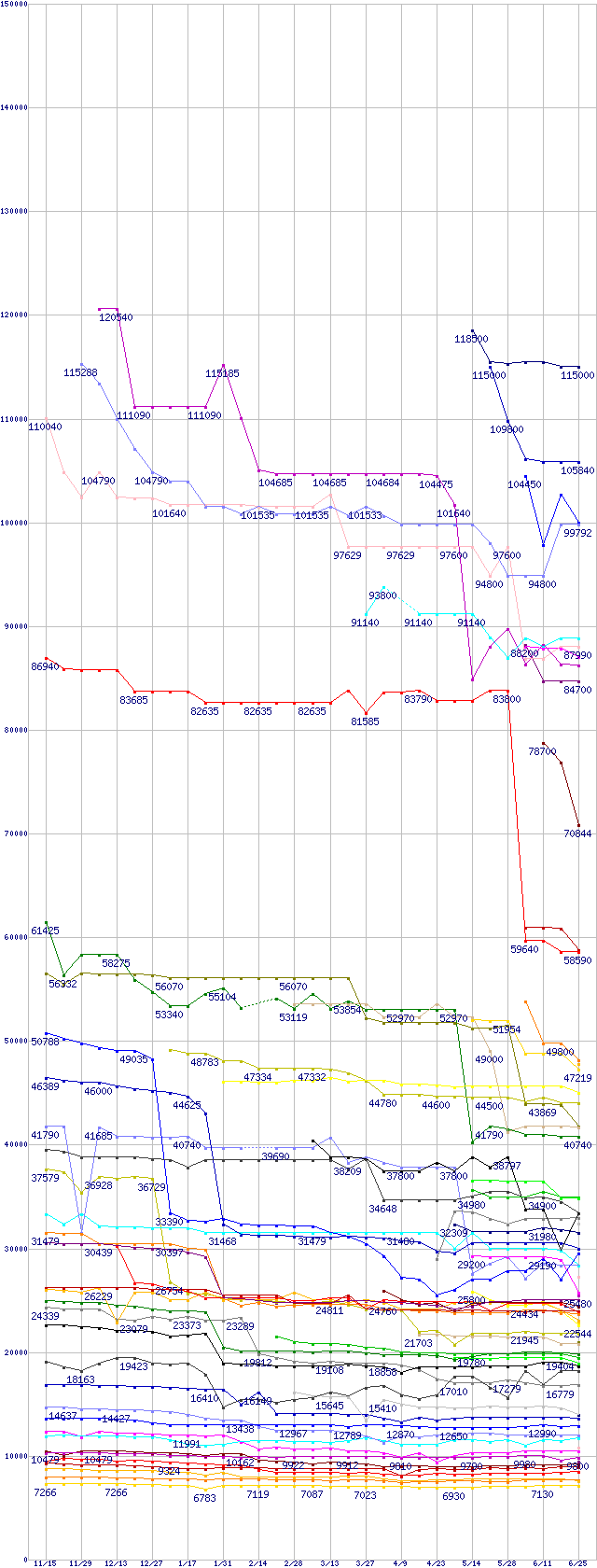 ※製品名をクリックすると個別のグラフを表示します ※点線部は販売店が確認できなかった、または調査データがないことを示します |