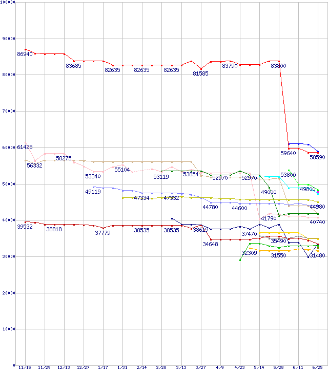 | [↓次グラフ]: | CPU主要製品(最安値6万円以上)の最安値推移 |
