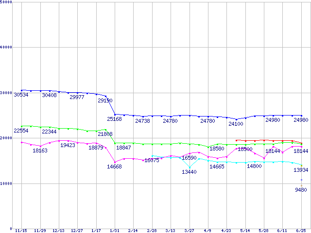 | [↑前グラフ]: | Socket 478・FSB 800MHzの最安値推移 |