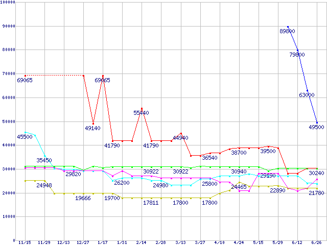 | [↑前グラフ]: | メモリ主要製品の最安値推移 |