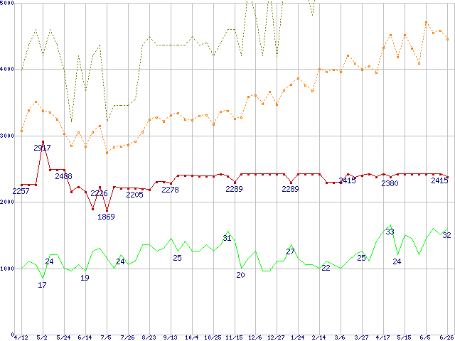PC133 SDRAM DIMM CasLatency=3の最安値推移