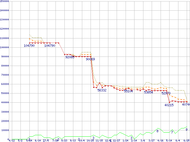 | Opteron 244(1.8GHz) リテールパッケージの価格推移 |