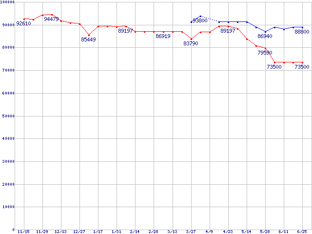 | [↑前グラフ]: | Socket 939 (PGA,FSB 1000MHz,L2 1MB)の最安値推移 |
