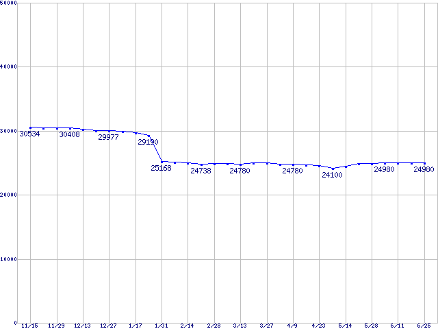 | [↑前グラフ]: | Socket 478 (micro-PGA,FSB 800MHz,L2 512KB,Hyper-Threading,Northwood)の最安値推移 |
