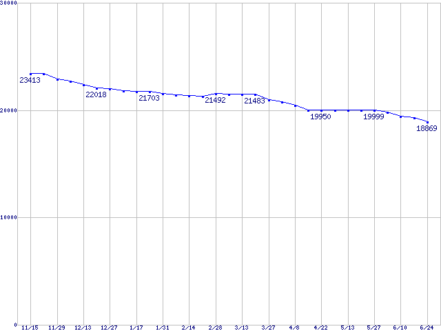 | [↑前グラフ]: | DiamondMax Plus 9 (7200rpm,8MB,SerialATA/150,FDB)の最安値推移 |