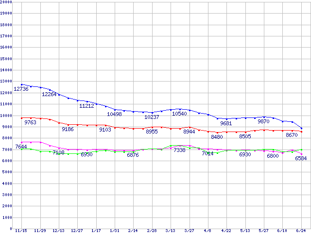 | DiamondMax 16 (5400rpm,UltraATA/133,2MB,80GB/Platter,FDB)の最安値推移 |