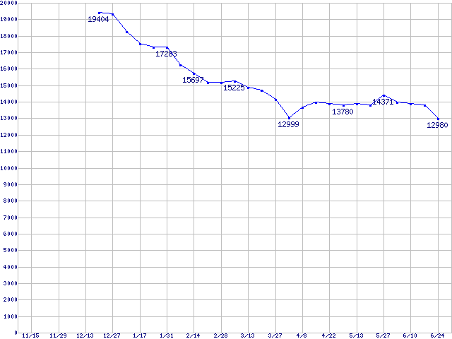 | [↑前グラフ]: | Barracuda 7200.7 (7200rpm,SerialATA,8MB,80GB/Platter,FDB)の最安値推移 |