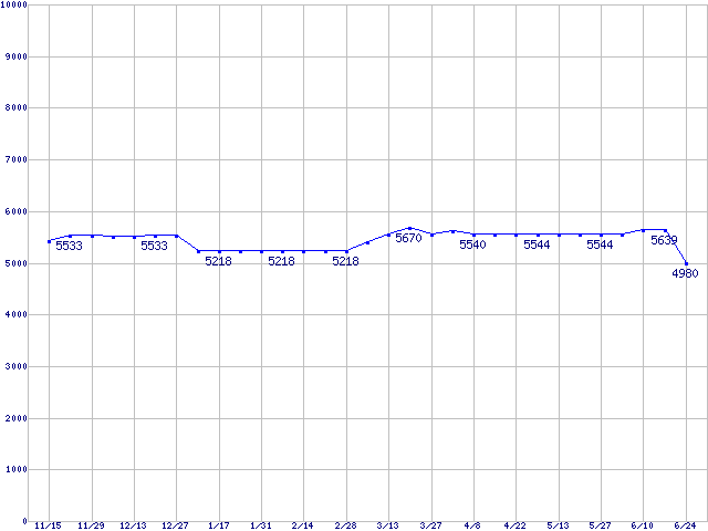 | [↑前グラフ]: | Barracuda 5400.1 (5400rpm,UltraATA/100,2MB,FDB)の最安値推移 |