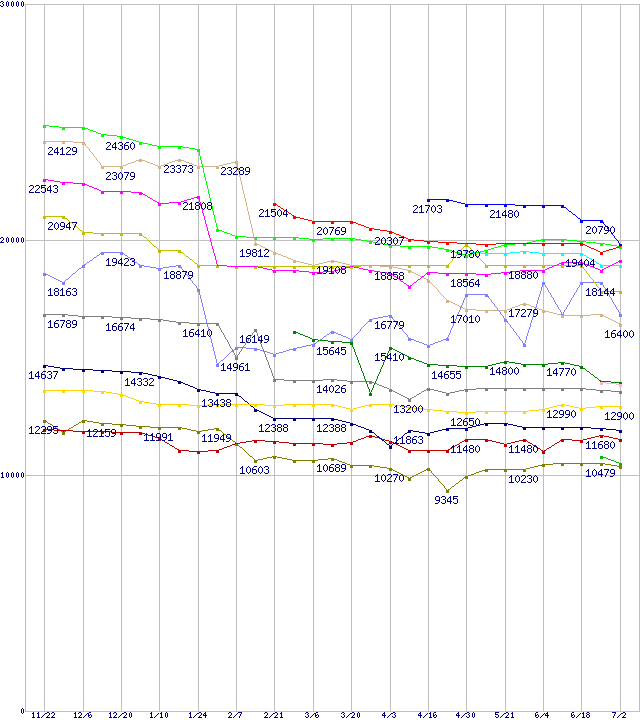 | [↓次グラフ]: | CPU主要製品(最安値2万円~3万円未満)の最安値推移 |