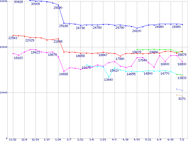 | ※製品名をクリックすると個別のグラフを表示します ※点線部は販売店が確認できなかった、または調査データがないことを示します | |