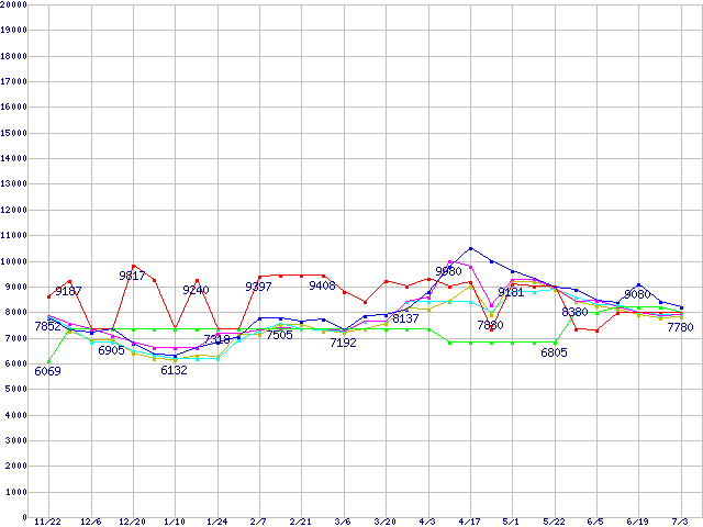 | [↑前グラフ]: | メモリ主要製品(最安値5千円未満)の最安値推移 |