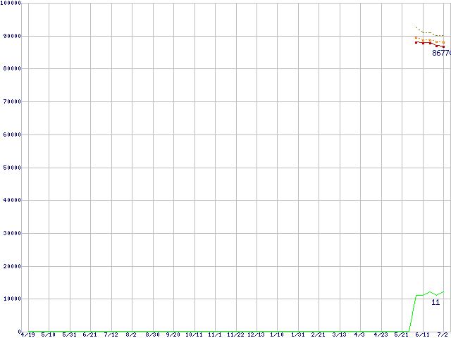 | Athlon 64 3700+(2.4GHz,L2 1MB) リテールパッケージの価格推移 |