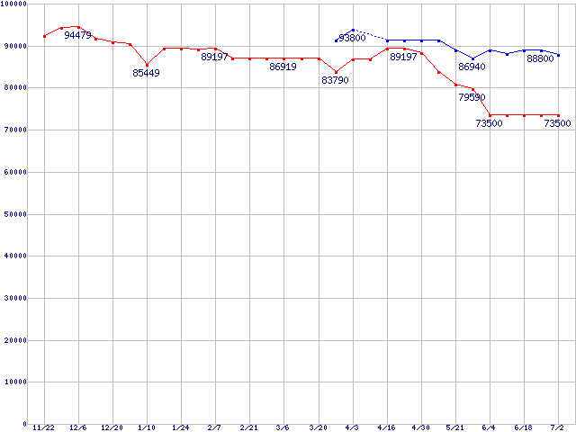 | Socket 940 (PGA,FSB 800MHz,L2 1MB)の最安値推移 |