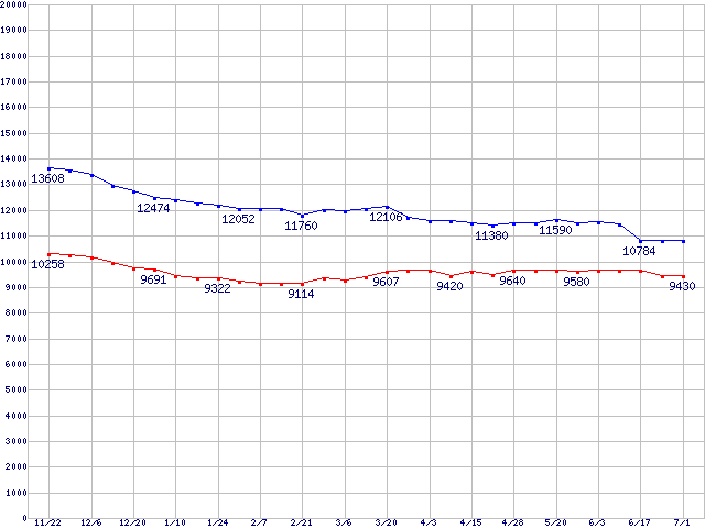 | [↑前グラフ]: | Barracuda 7200.7 Plus (7200rpm,UltraATA/100,8MB,100GB/Platter,FDB)の最安値推移 |