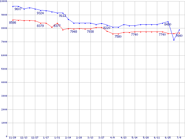 | [↑前グラフ]: | Socket 754・FSB 800MHzの最安値推移 |