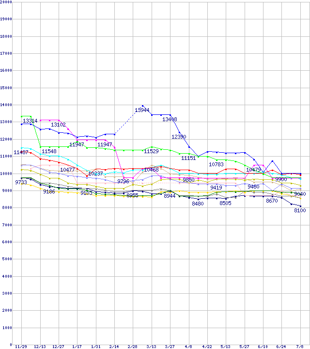 ※点線部は販売店が確認できなかった、または調査データがないことを示します