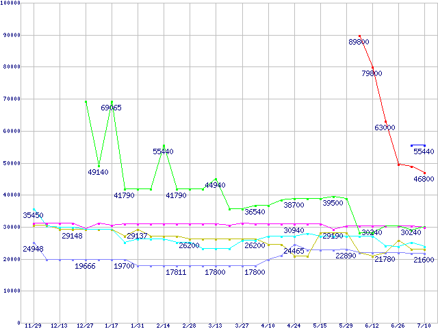 | [↑前グラフ]: | メモリ主要製品の最安値推移 |
