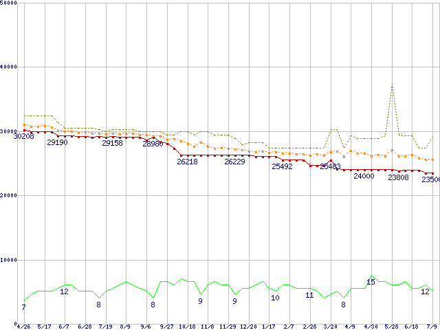 | Xeon 2.40GHz(FSB533) リテールパッケージの価格推移 |