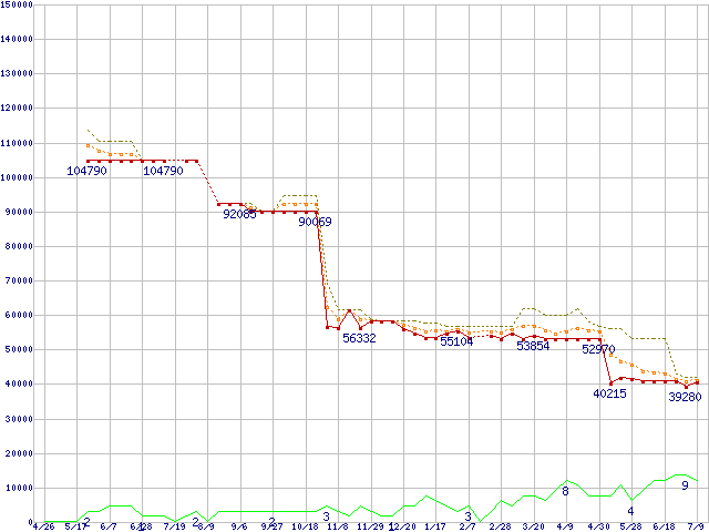 | Opteron 244(1.8GHz) リテールパッケージの価格推移 |