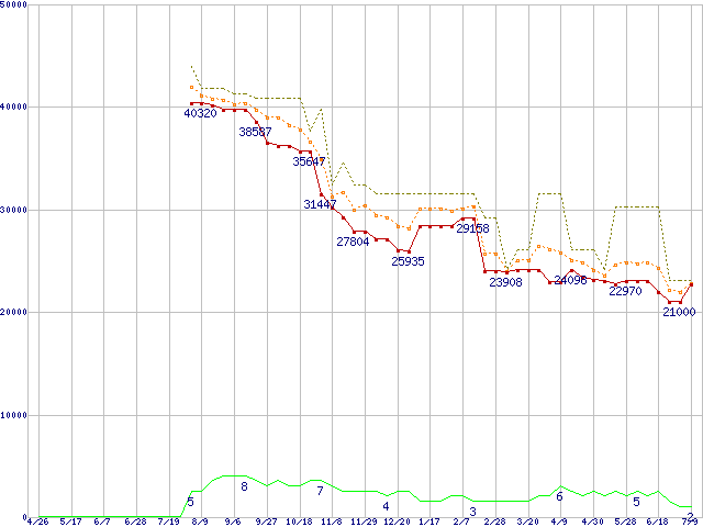| Opteron 142(1.6GHz) リテールパッケージの価格推移 |