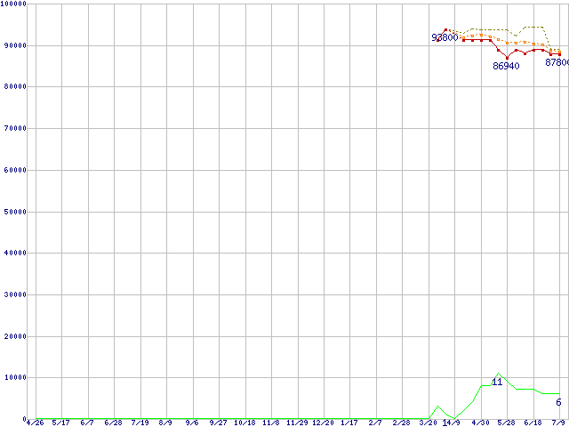 | Athlon 64 FX-53(2.4GHz) リテールパッケージの価格推移 |