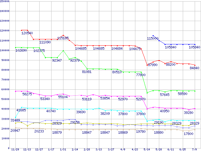 | [↑前グラフ]: | Socket 940 (PGA,FSB 800MHz,L2 1MB)の最安値推移 |