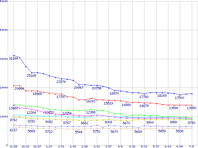 | [↑前グラフ]: | Deskstar 7K250 (7200rpm,SerialATA/150,FDB)の最安値推移 |