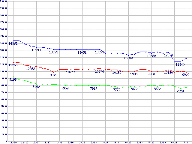 | [↑前グラフ]: | Barracuda 7200.7 SATA (7200rpm,SerialATA,8MB,100GB/Platter,FDB)の最安値推移 |