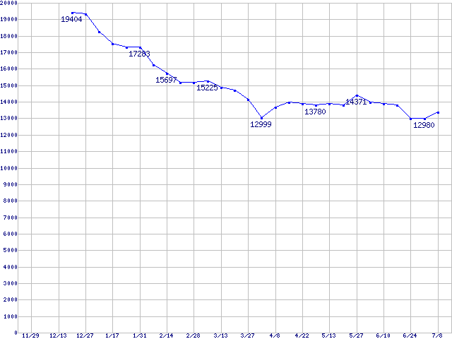 | [↑前グラフ]: | Barracuda 7200.7 (7200rpm,SerialATA,8MB,80GB/Platter,FDB)の最安値推移 |