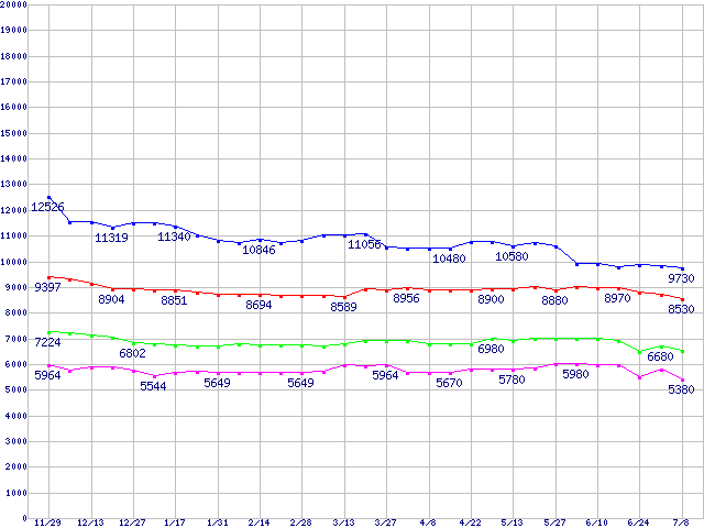 | Barracuda 7200.7 (7200rpm,UltraATA/100,2MB,80GB/Platter,FDB)の最安値推移 |