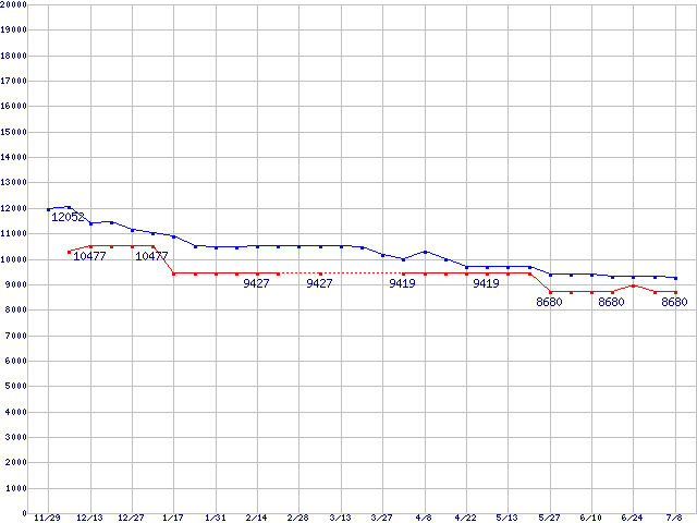 | [↑前グラフ]: | SpinPoint P80 (7200rpm,UltraATA/133,8MB)の最安値推移 |