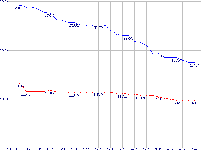 | [↑前グラフ]: | WD Raptor (10000rpm,SerialATA,8MB)の最安値推移 |