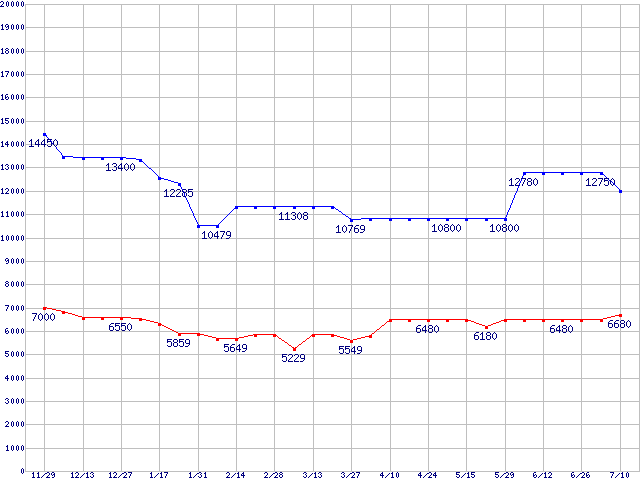 | [↓次グラフ]: | PC4300(DDR533) DDR SDRAM DIMMの最安値推移 |